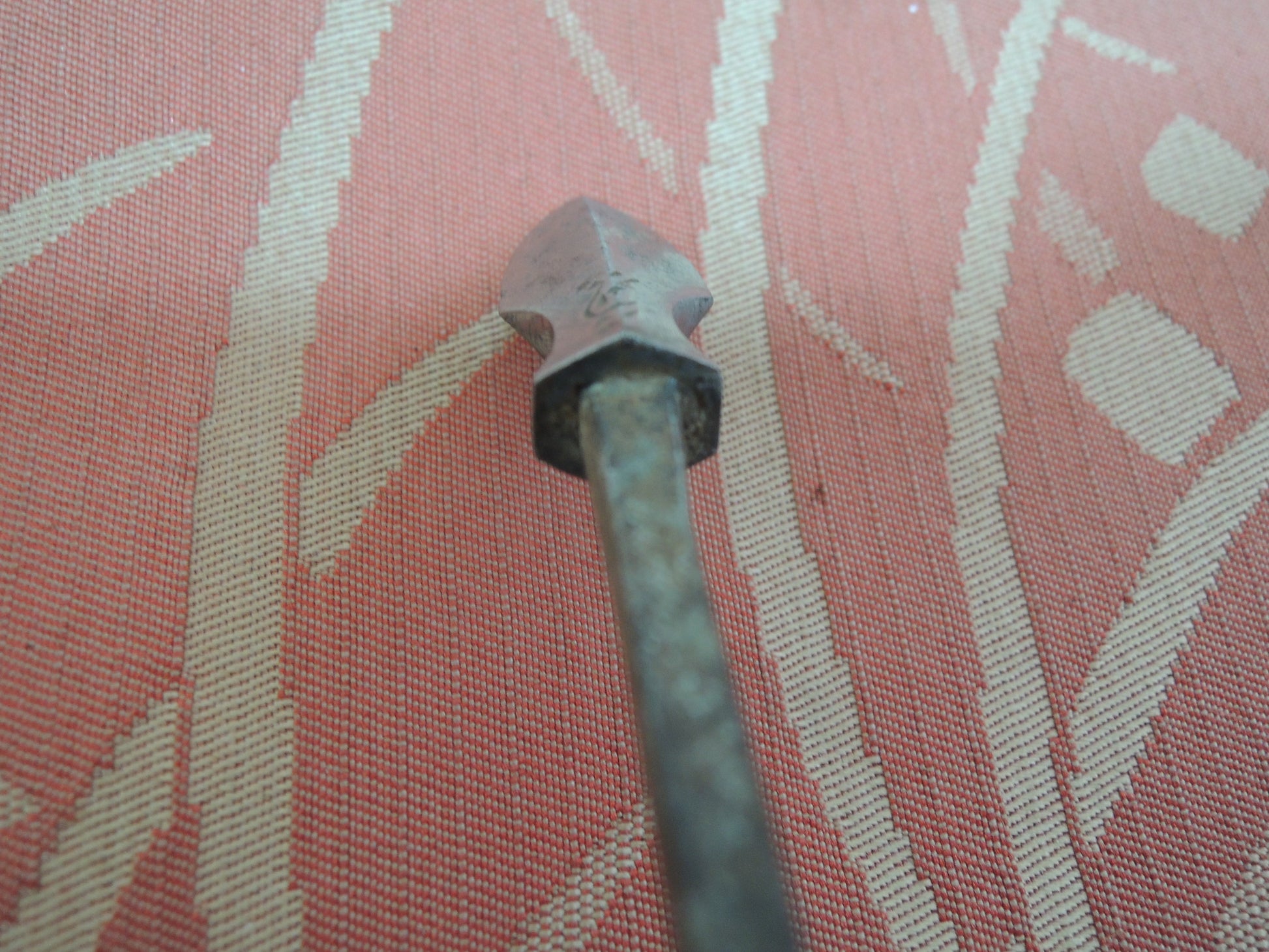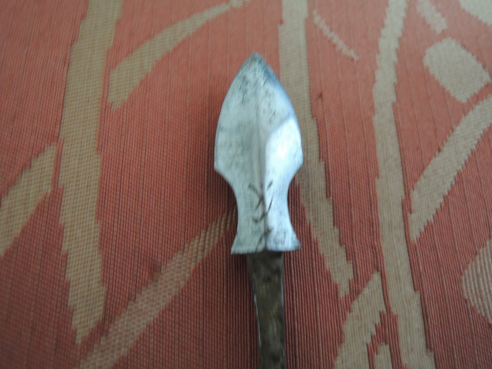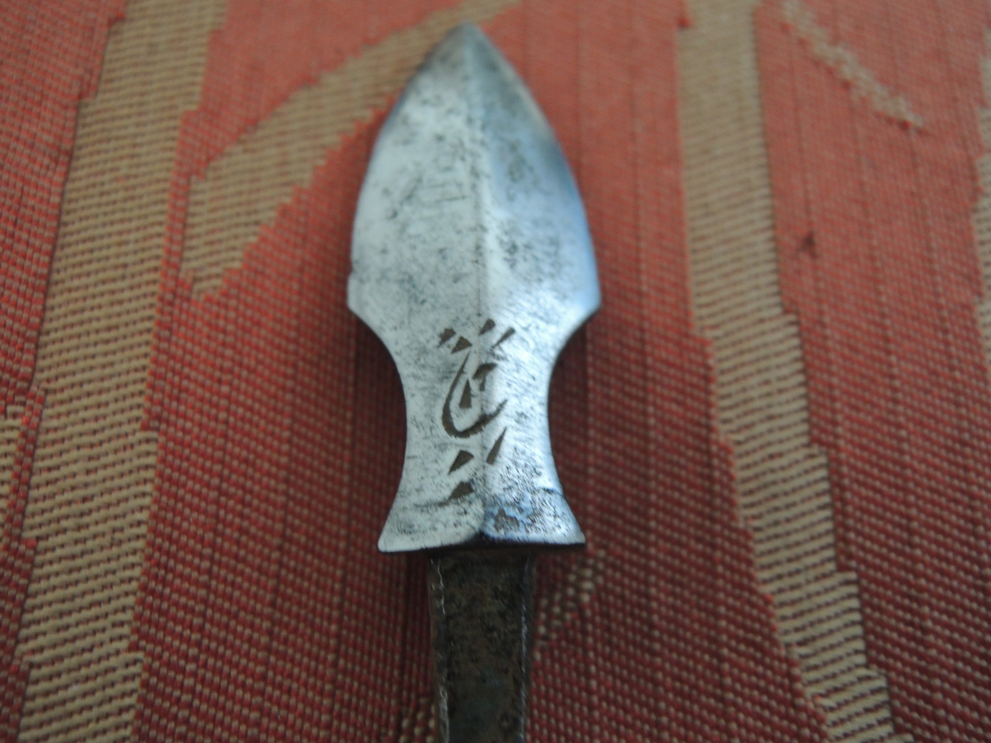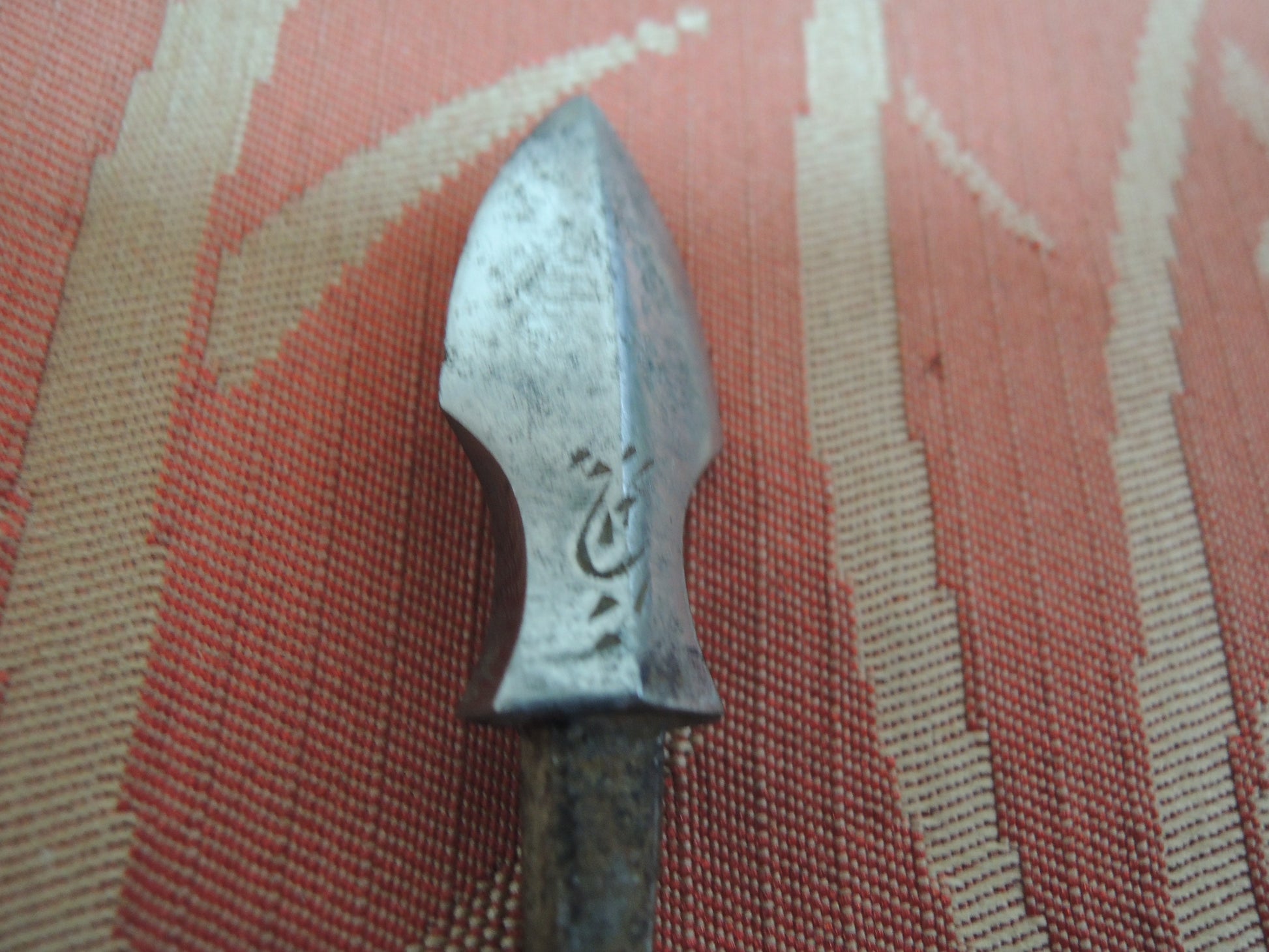 Sanskrit characters are engraved on the blade of the arrowhead.