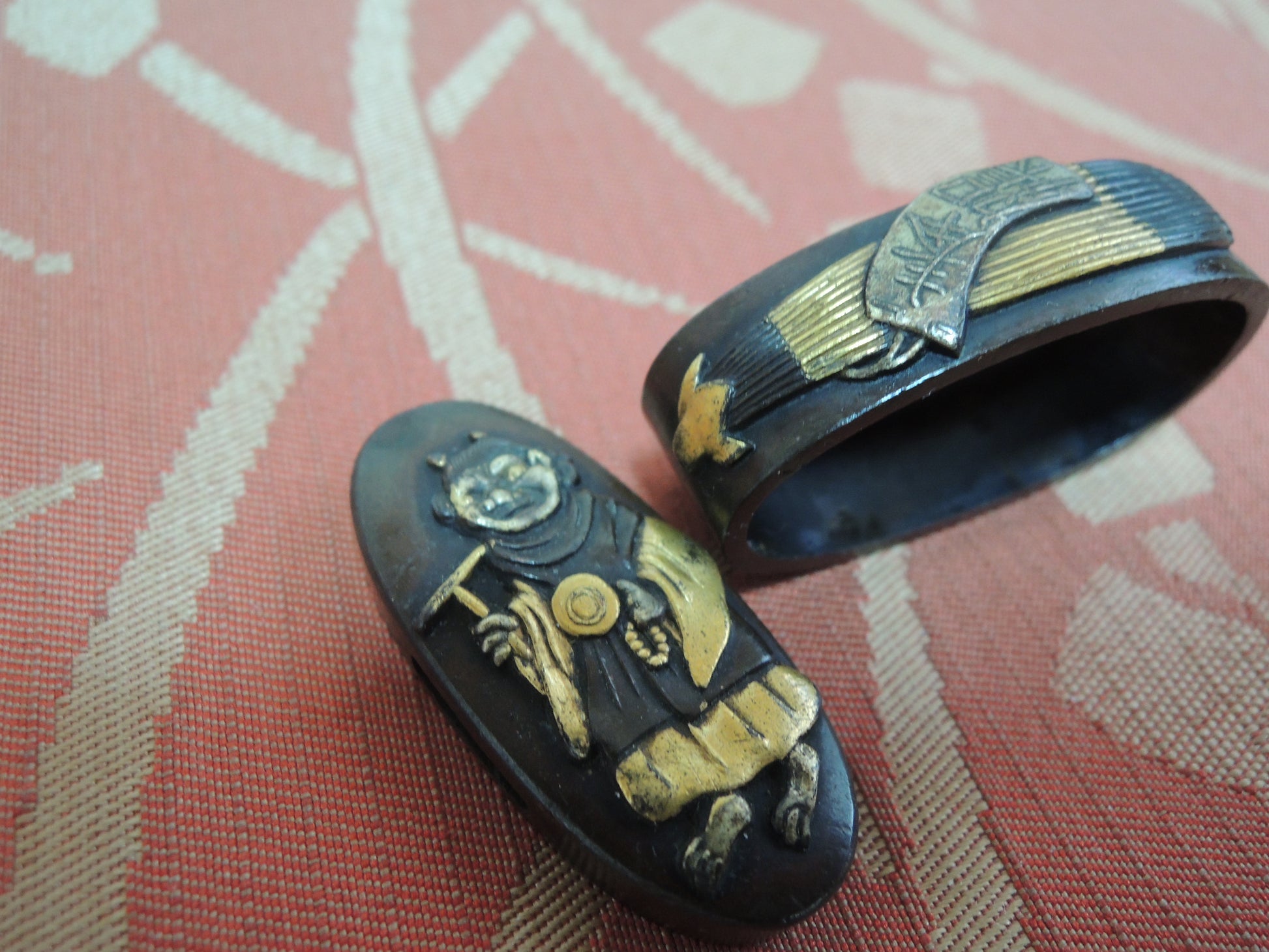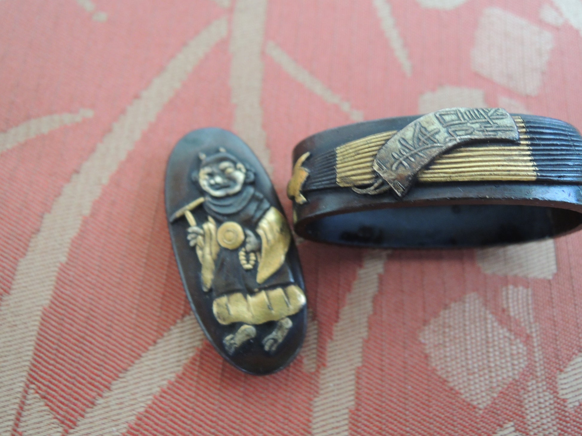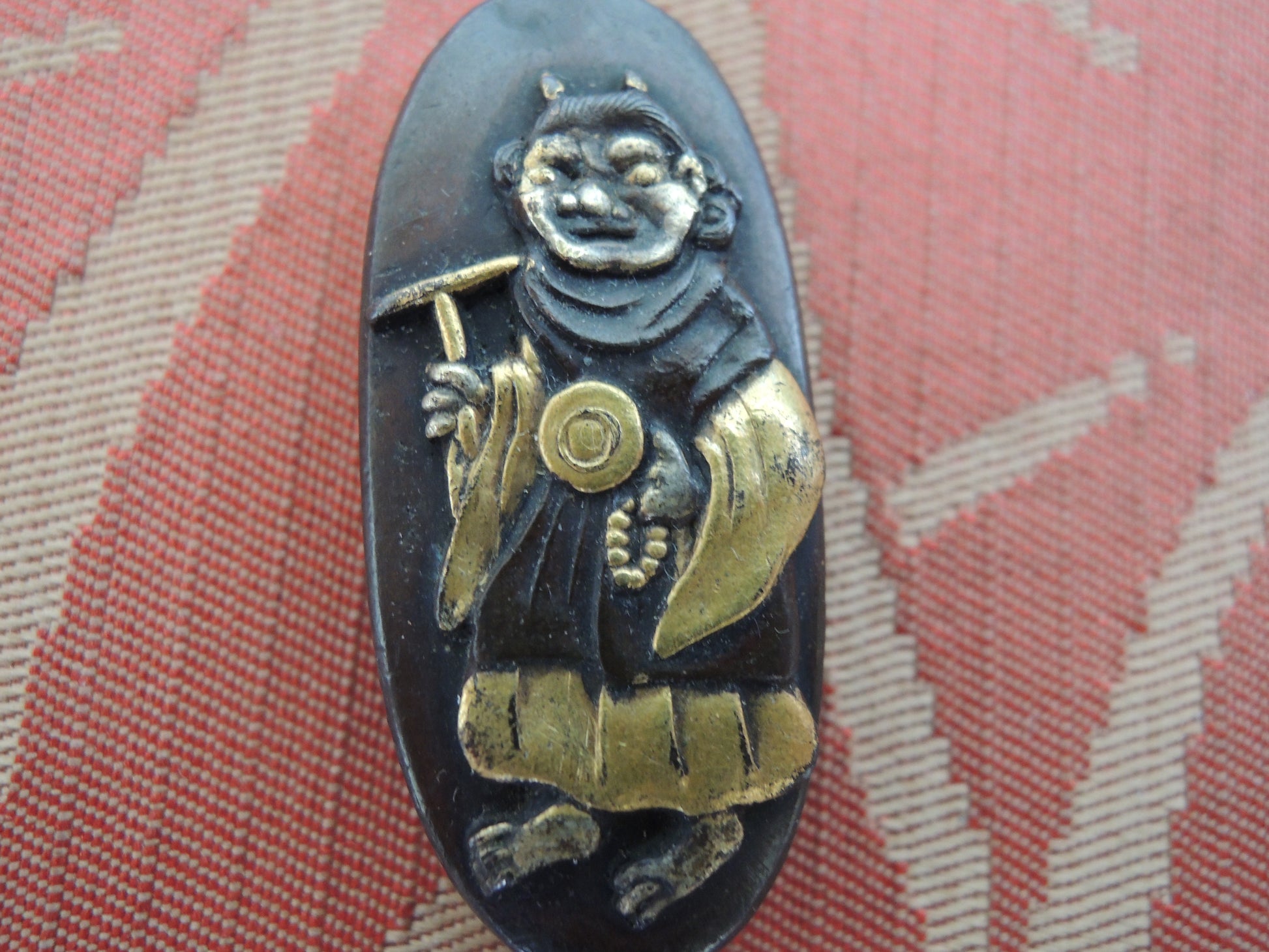 Antique Fuchi Japan Samurai katana Edo period Masked Monk and ledger book