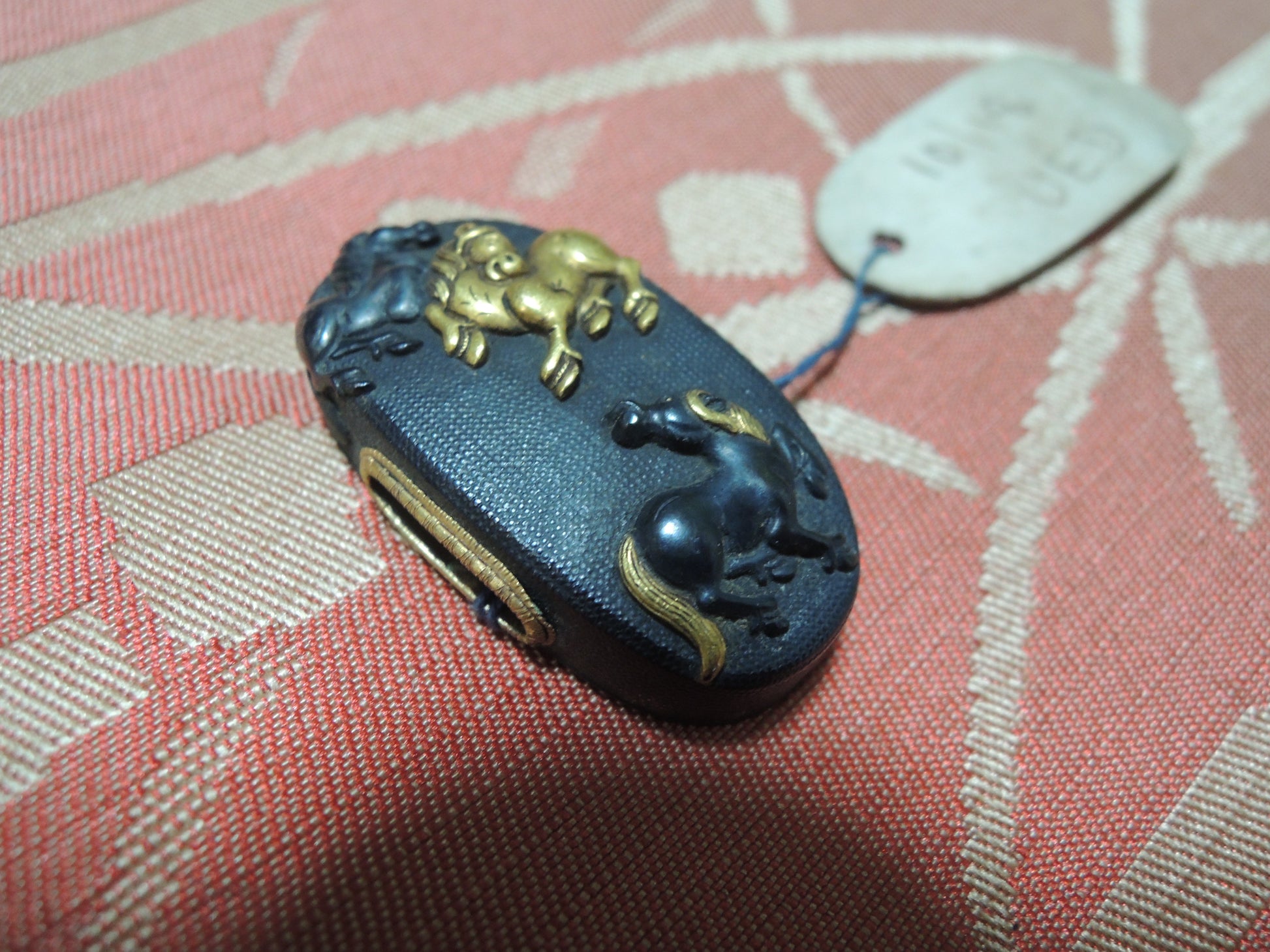 Antique Fuchikashira Japan Samurai katana Edo period A herd of horses