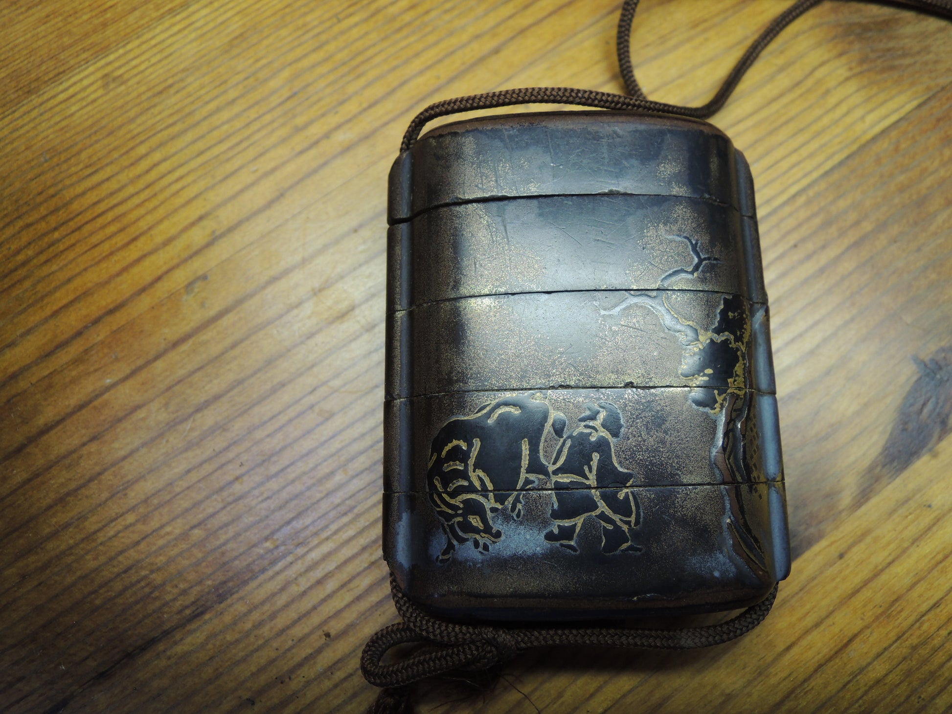 Antique Inro Japan Samurai Edo period mountains and rivers