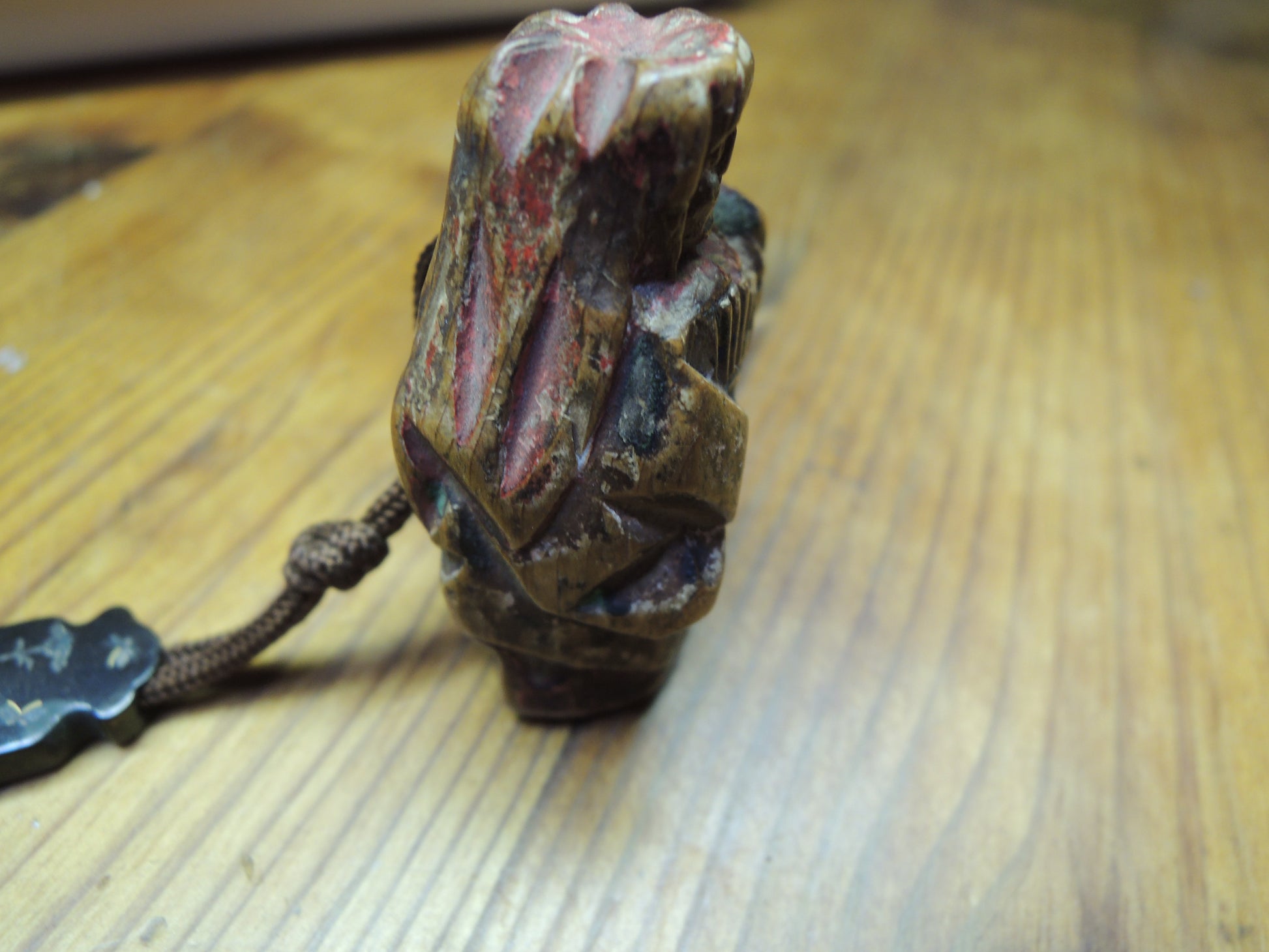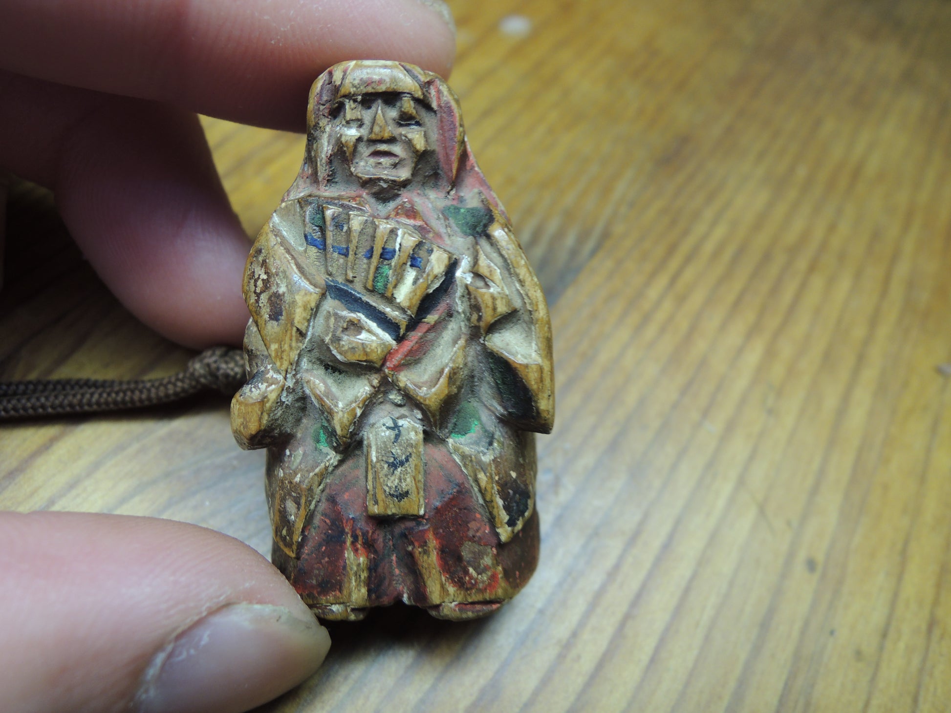 It also comes with a carved wooden netsuke, which seems to be based on the motif of a Nogaku actor.