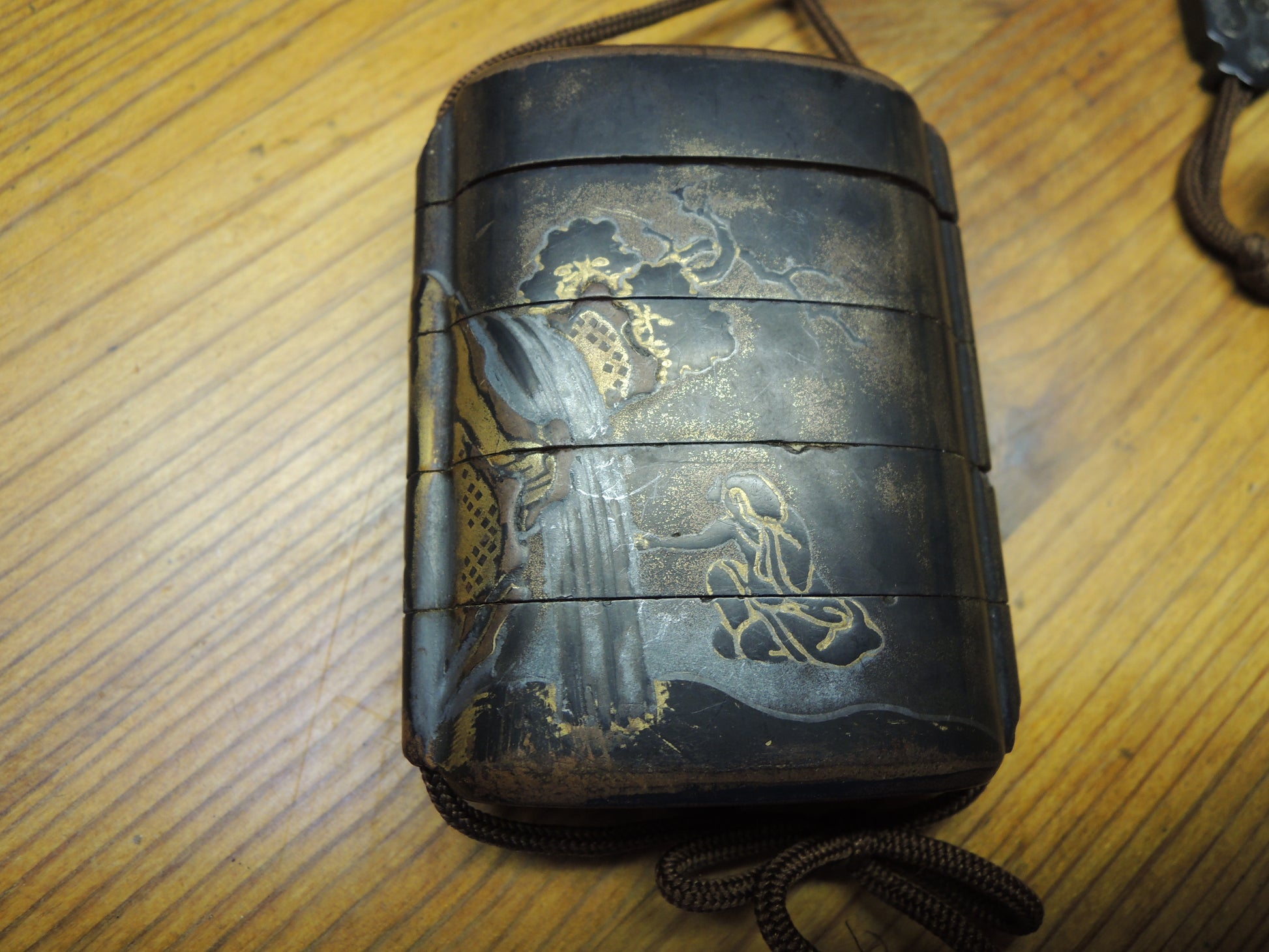 Antique Inro Japan Samurai Edo period mountains and rivers