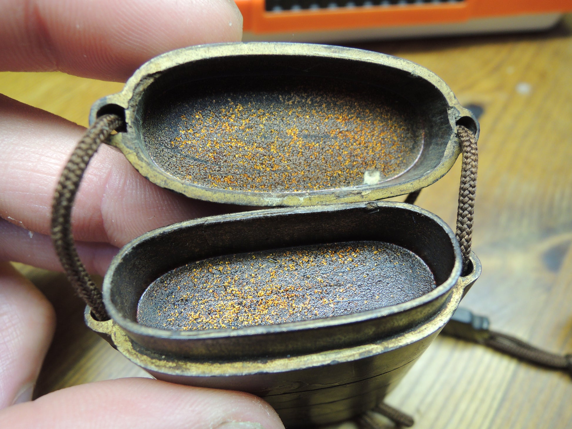 It also comes with a carved wooden netsuke, which seems to be based on the motif of a Nogaku actor.