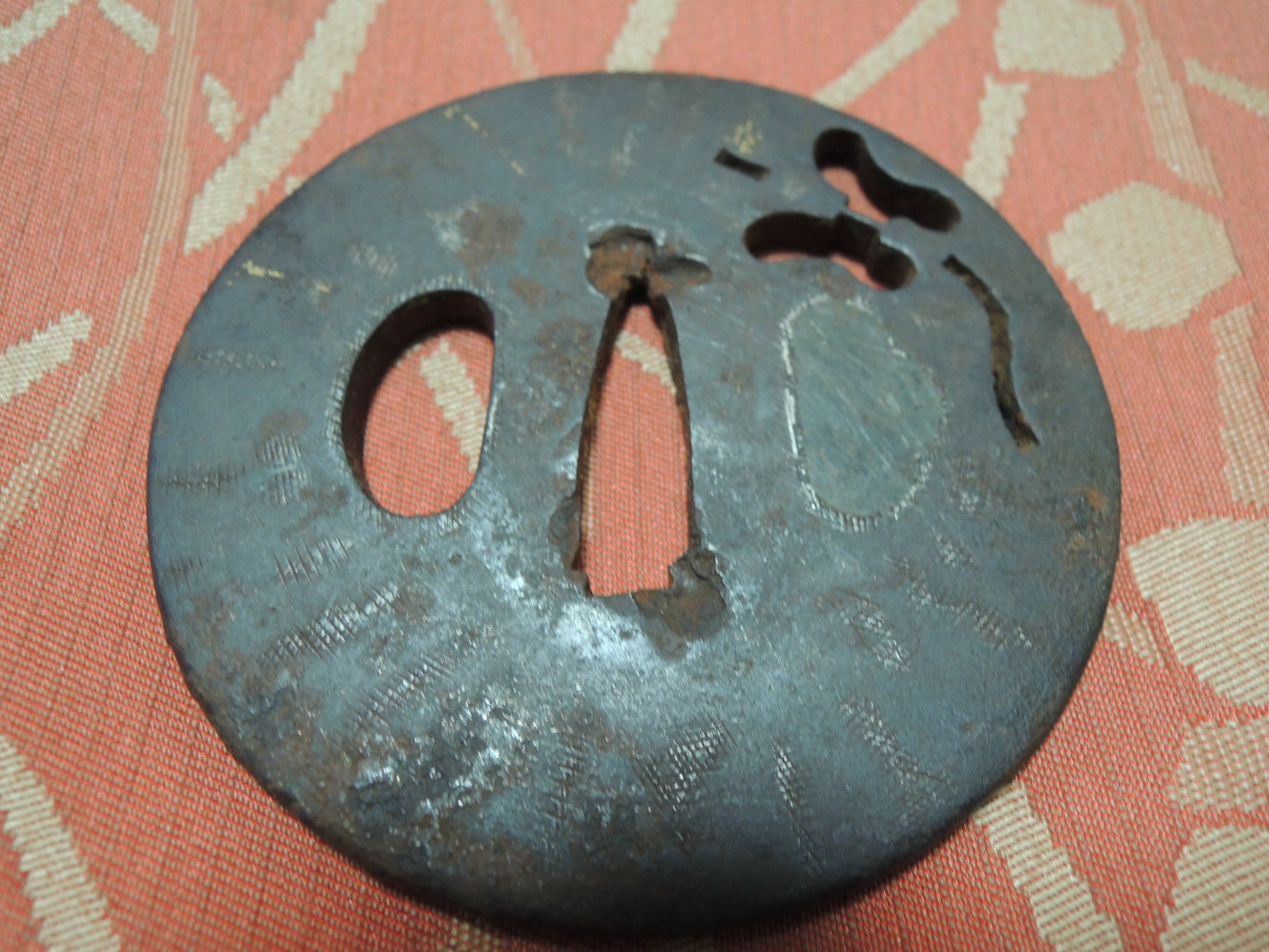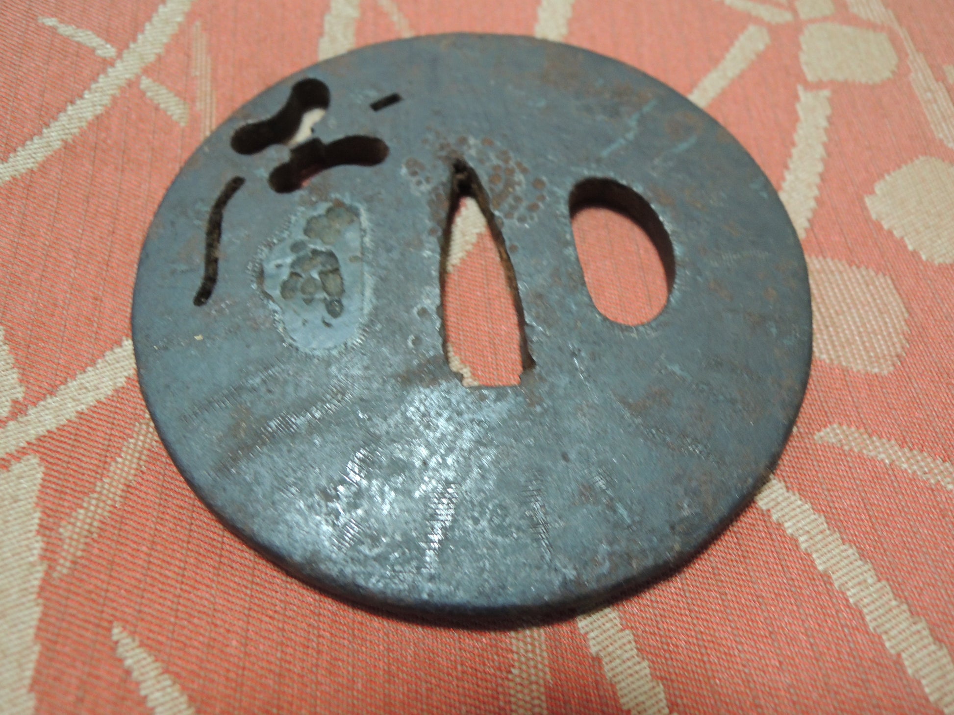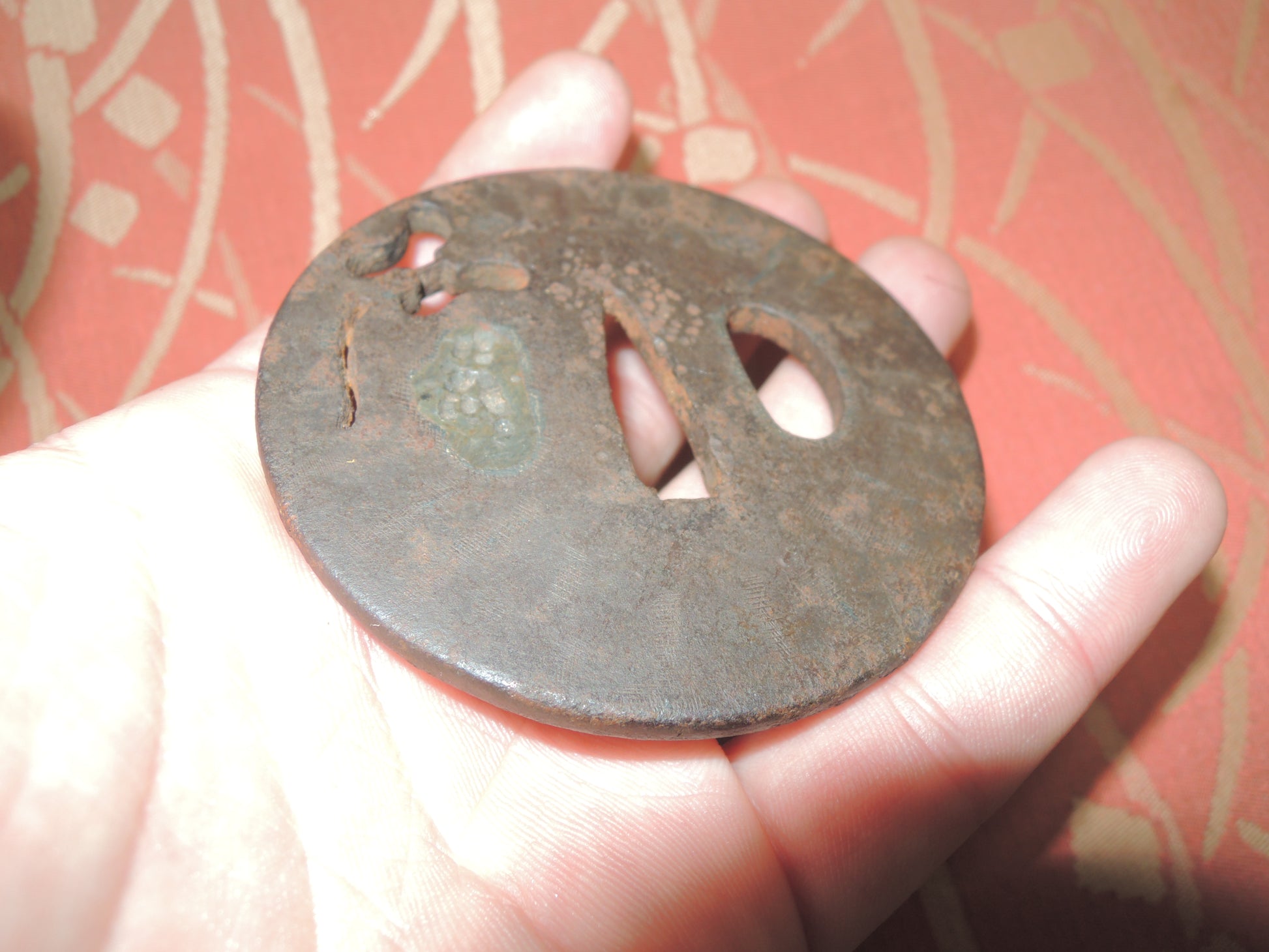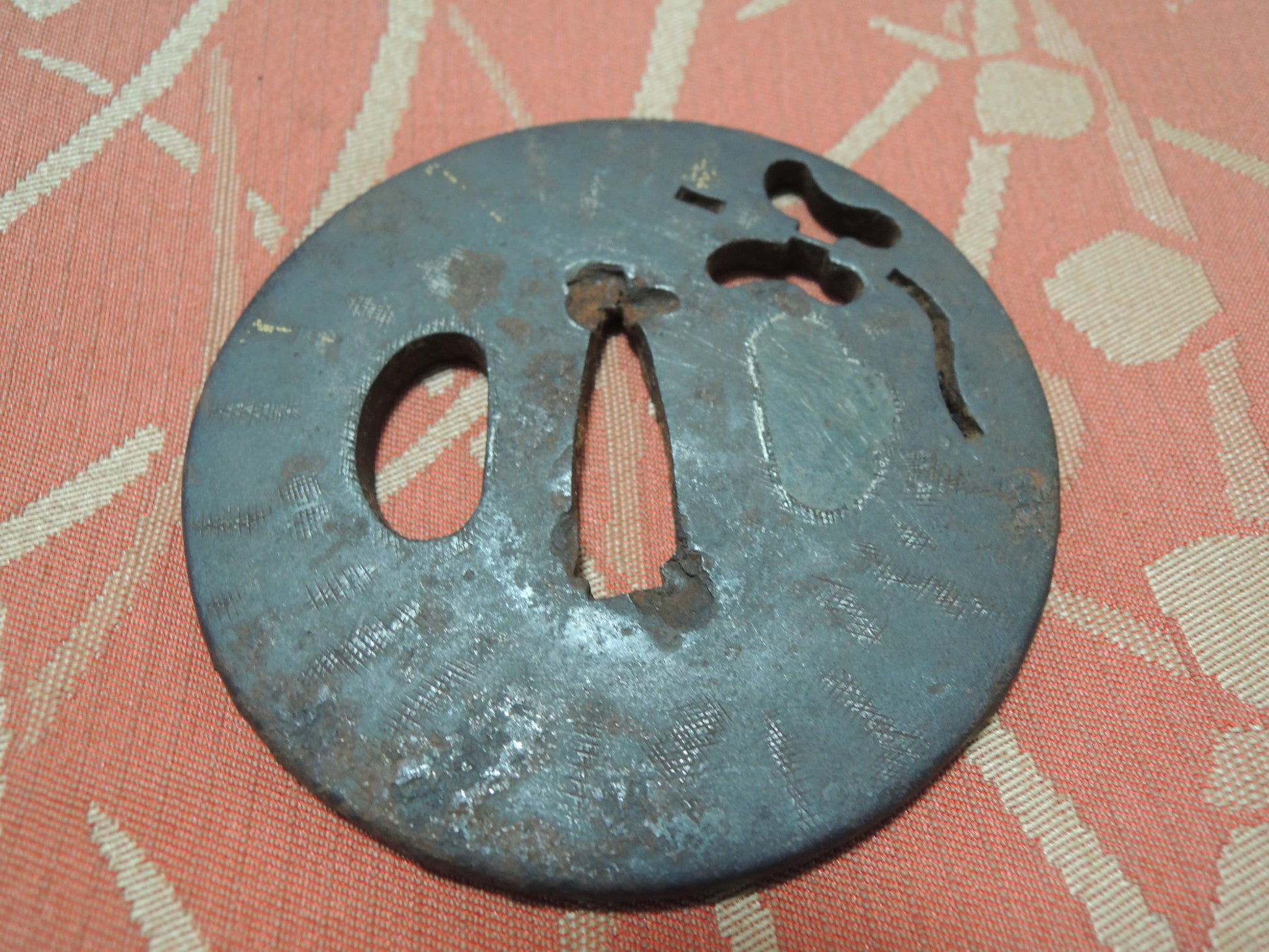 Antique Iron Sukashi Tsuba Japan Samurai katana Edo period Gunbai no zu