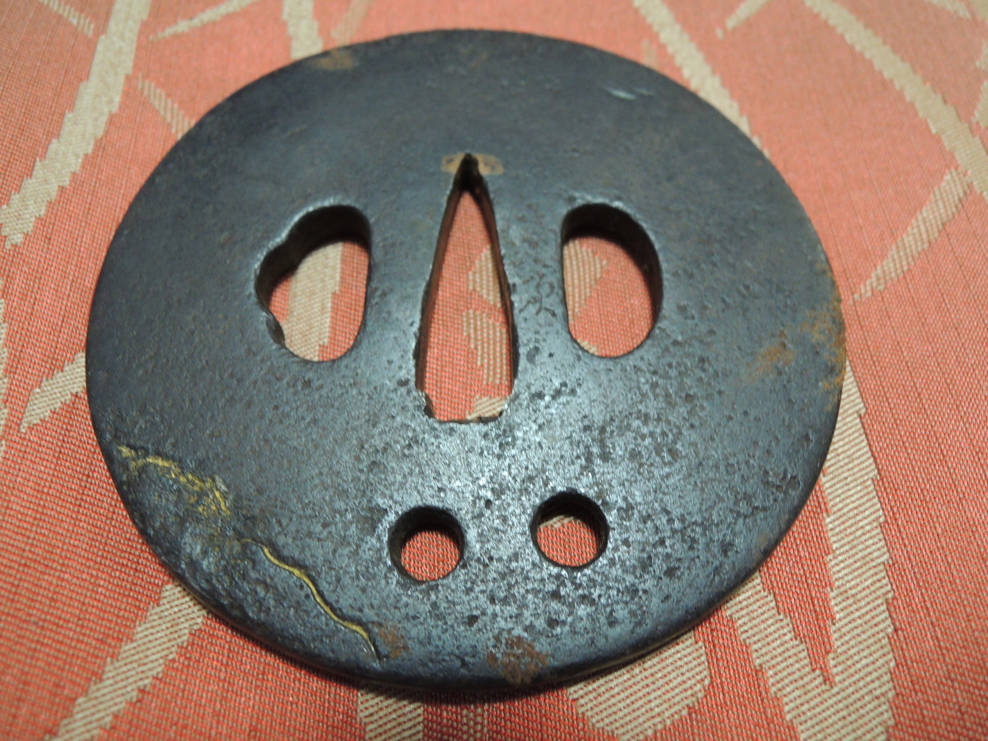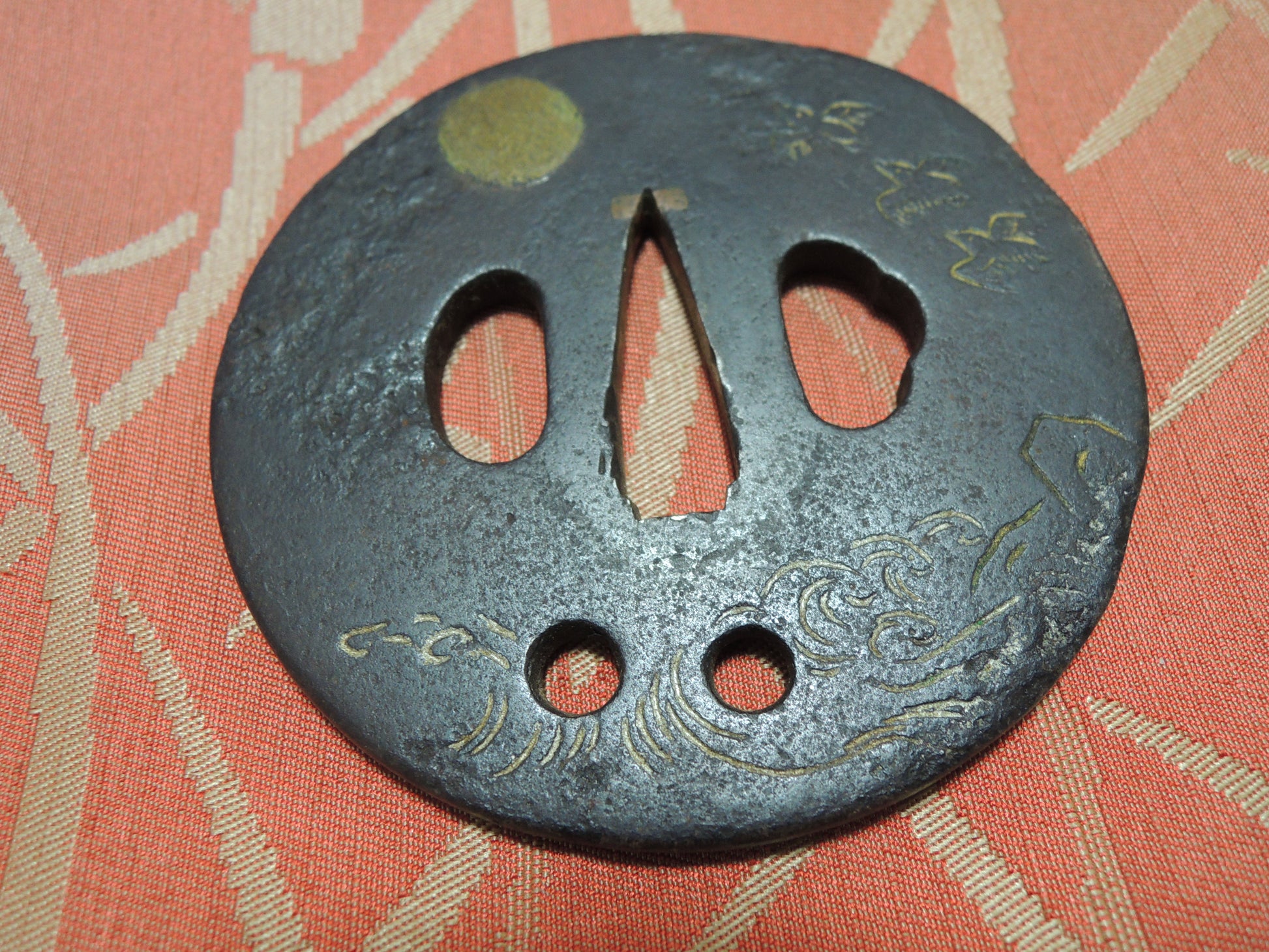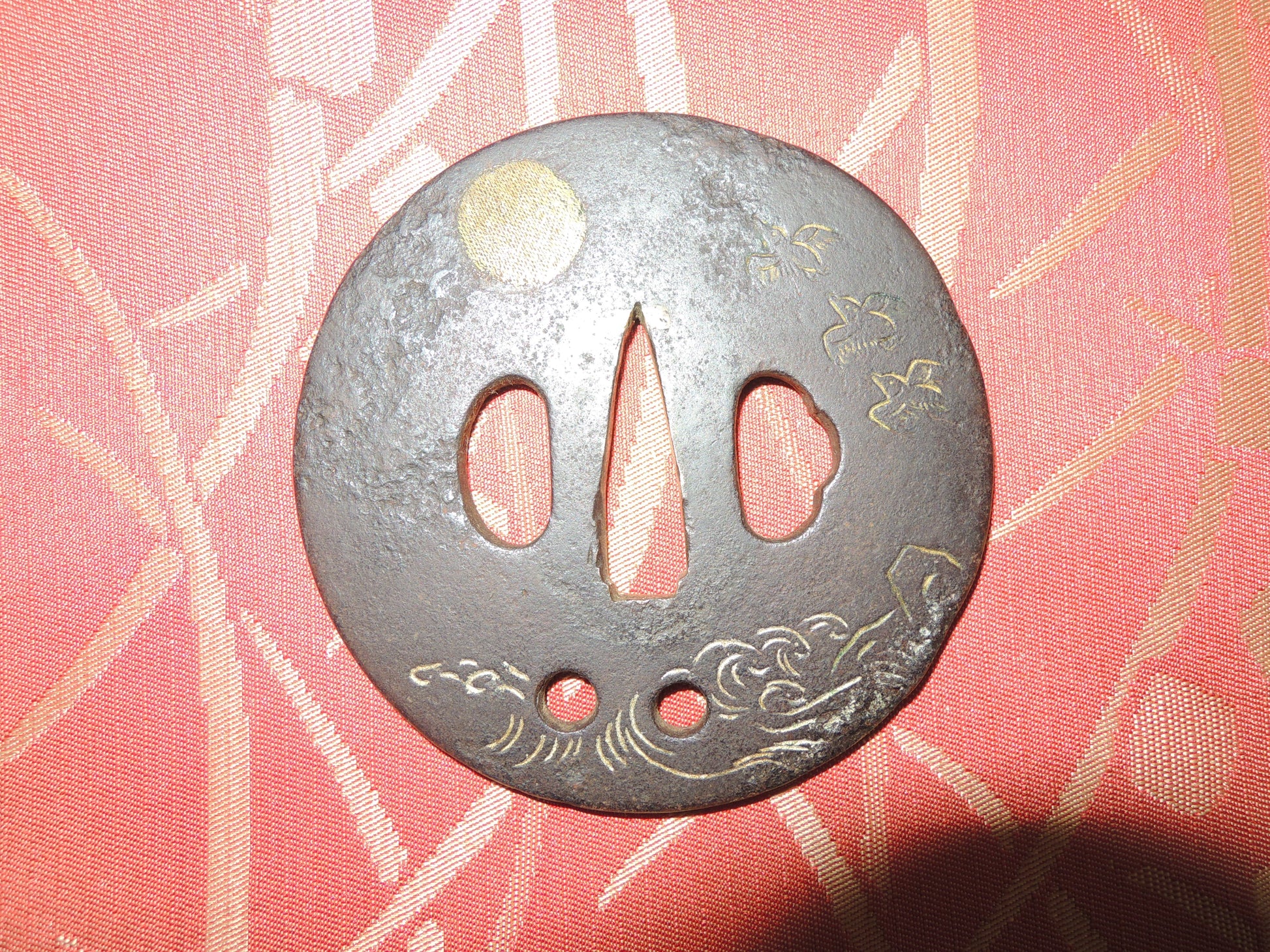 Antique Iron Tsuba Japan Samurai katana Edo period Full moon and seabirds