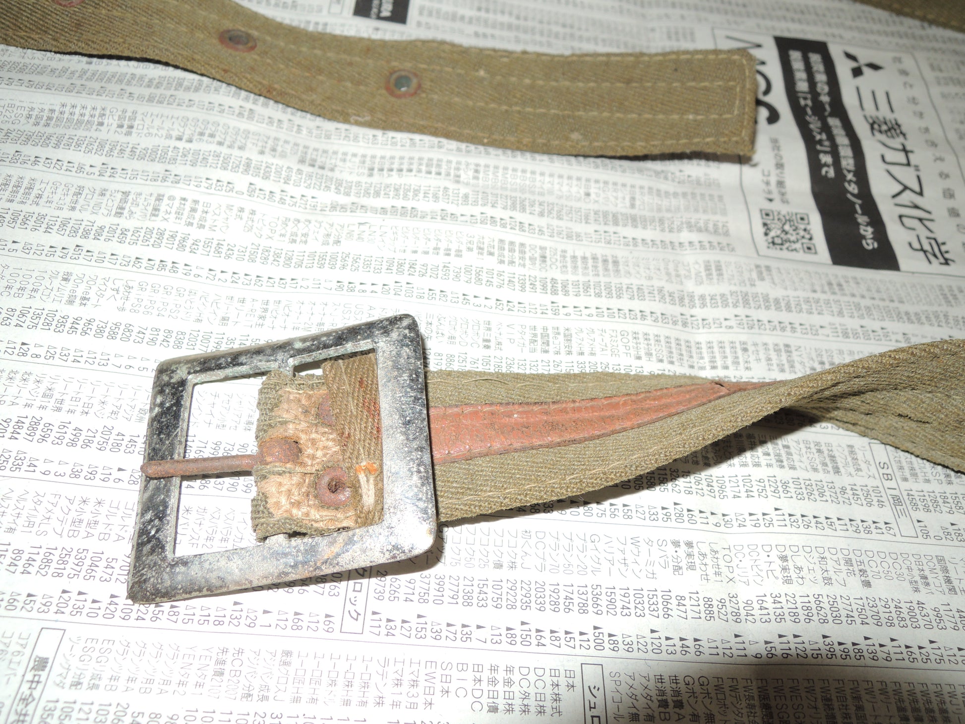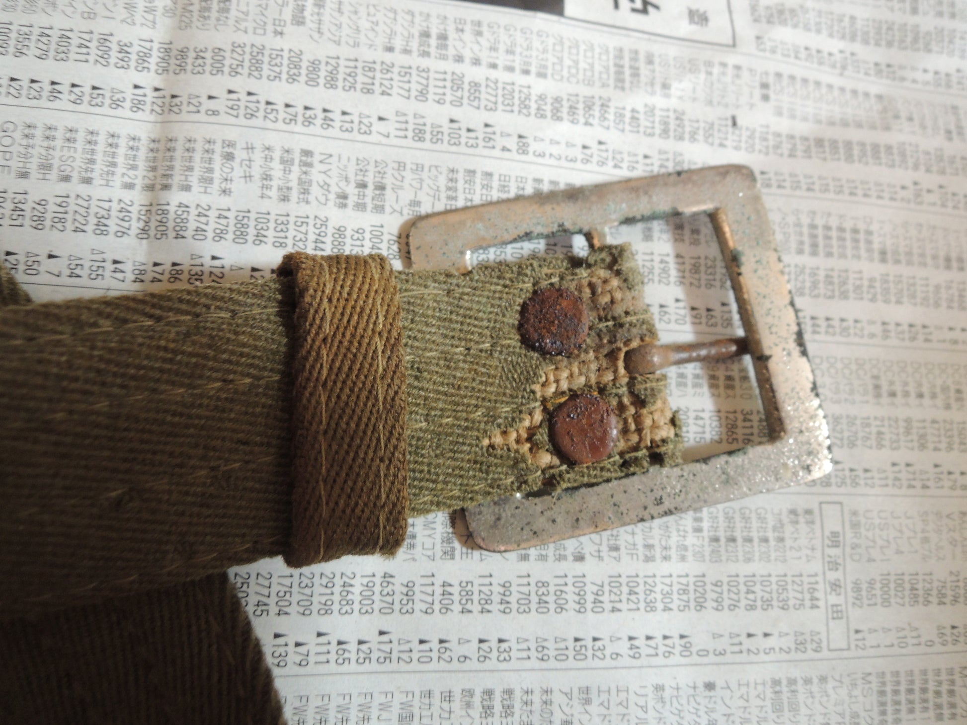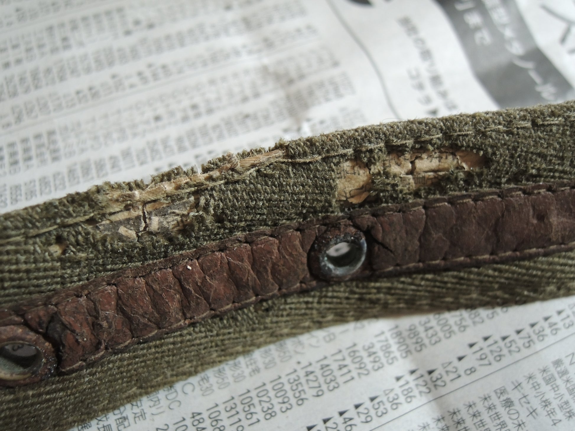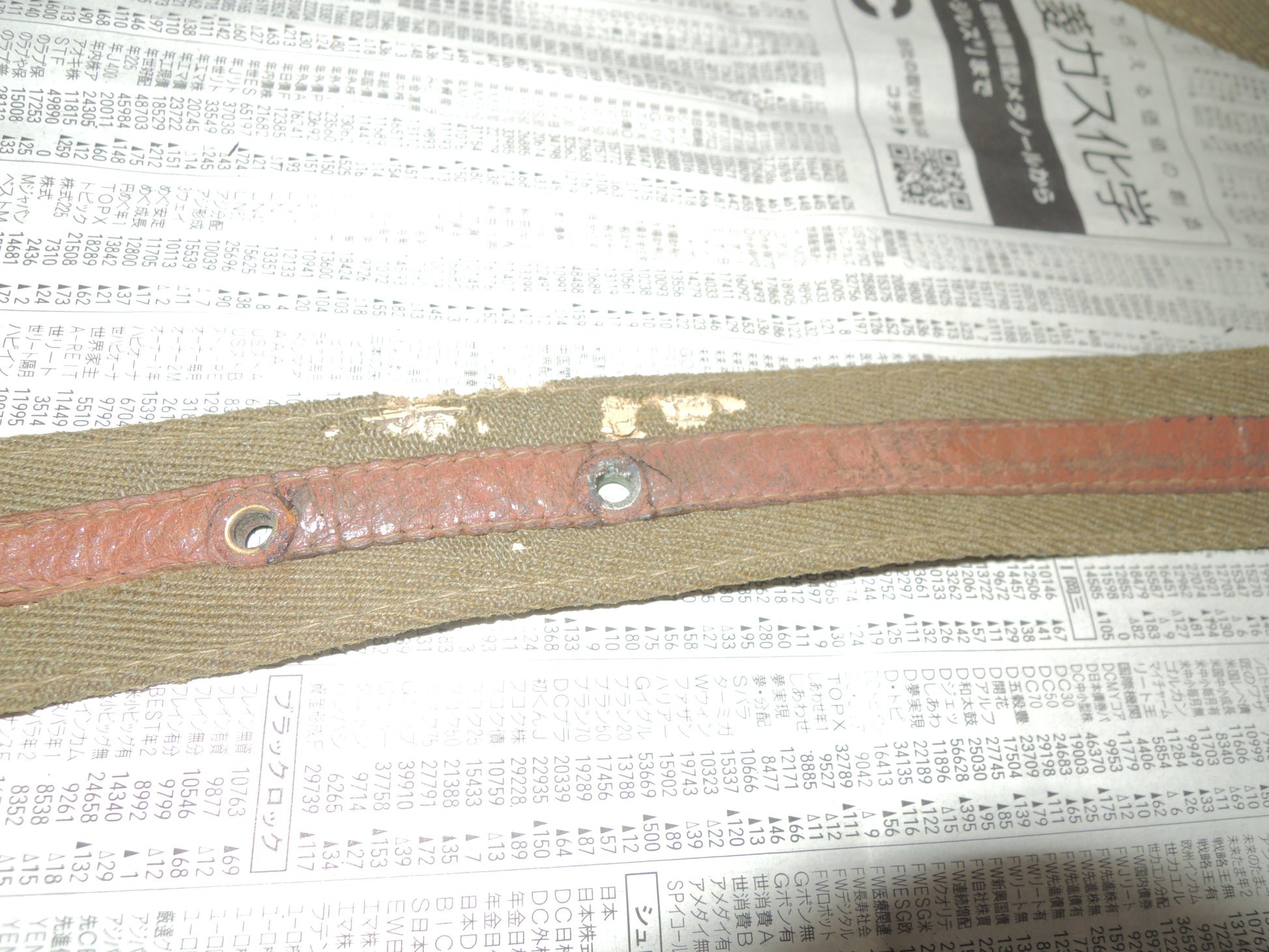 The core of the belt is made of newspaper, suggesting that it was made when the war was going badly.