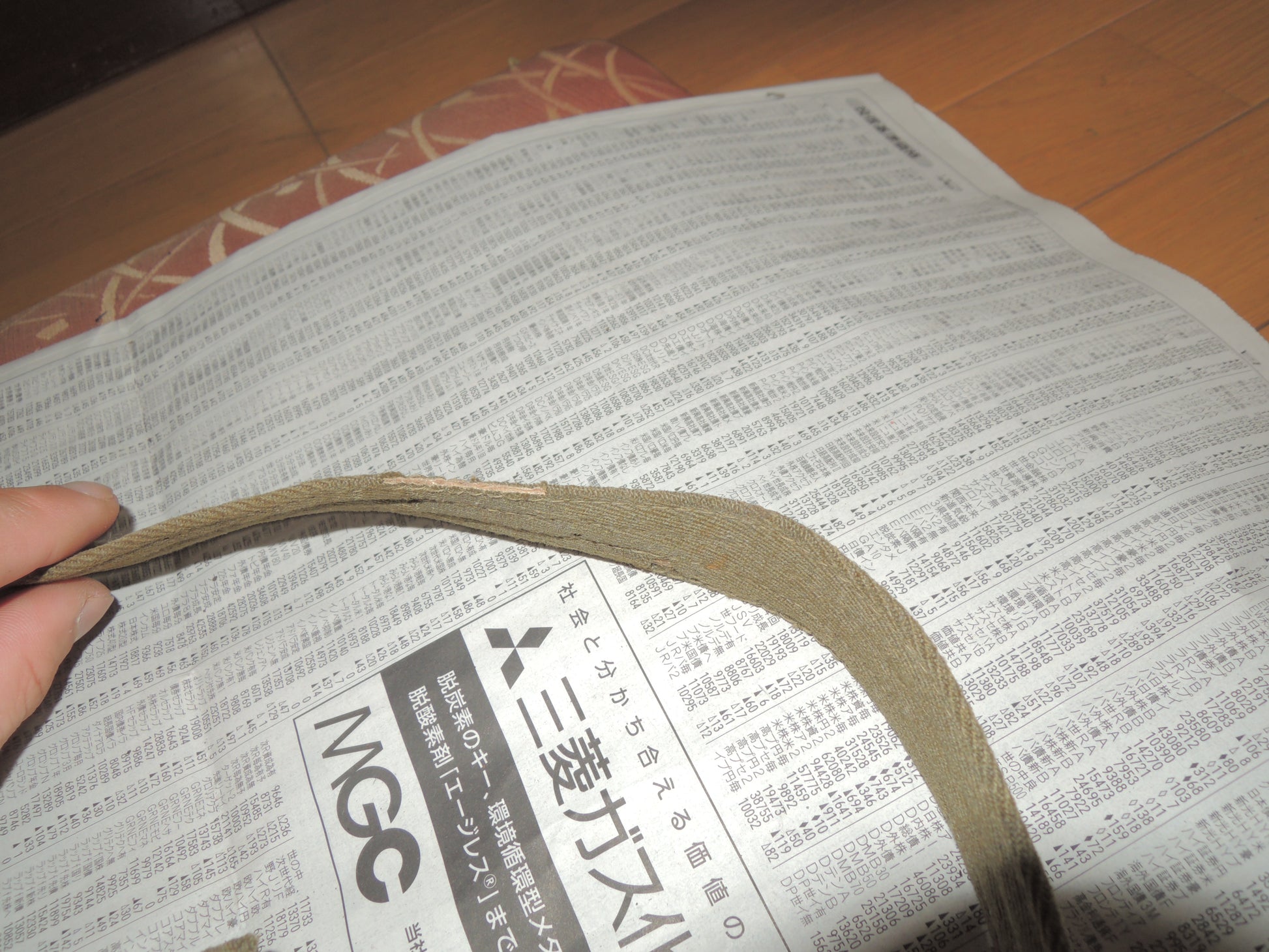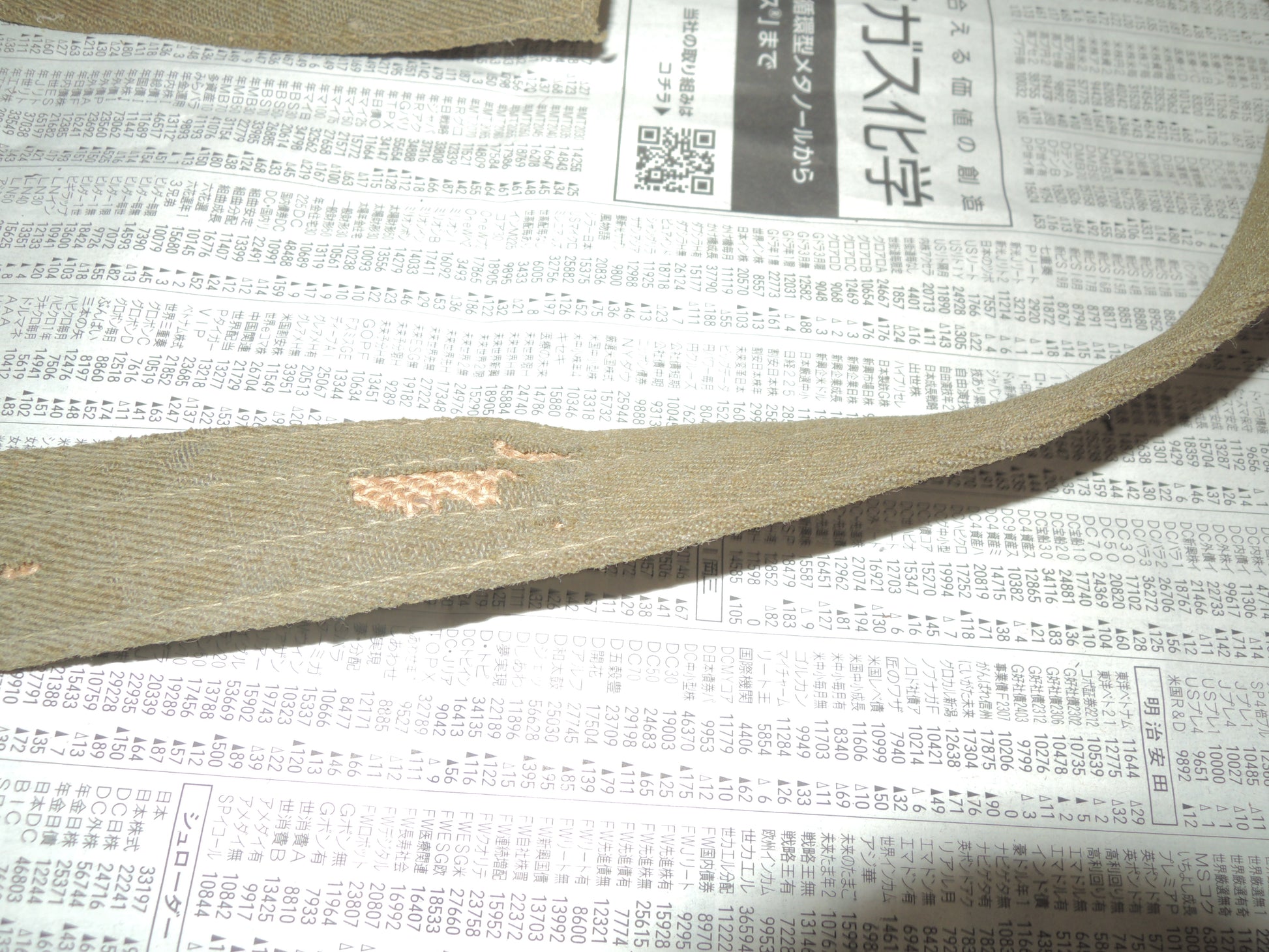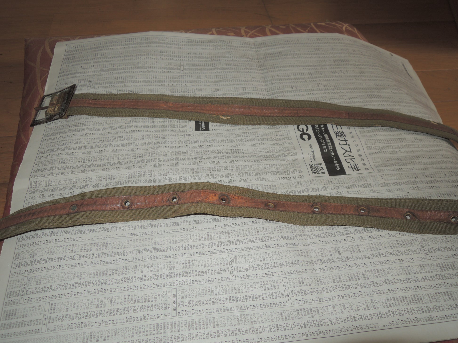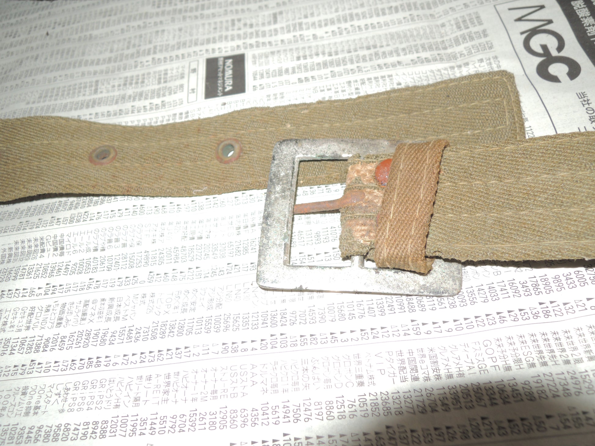 The core of the belt is made of newspaper, suggesting that it was made when the war was going badly.