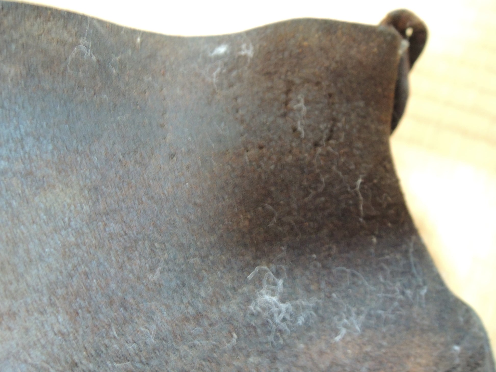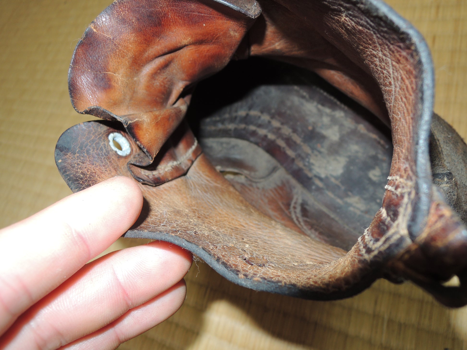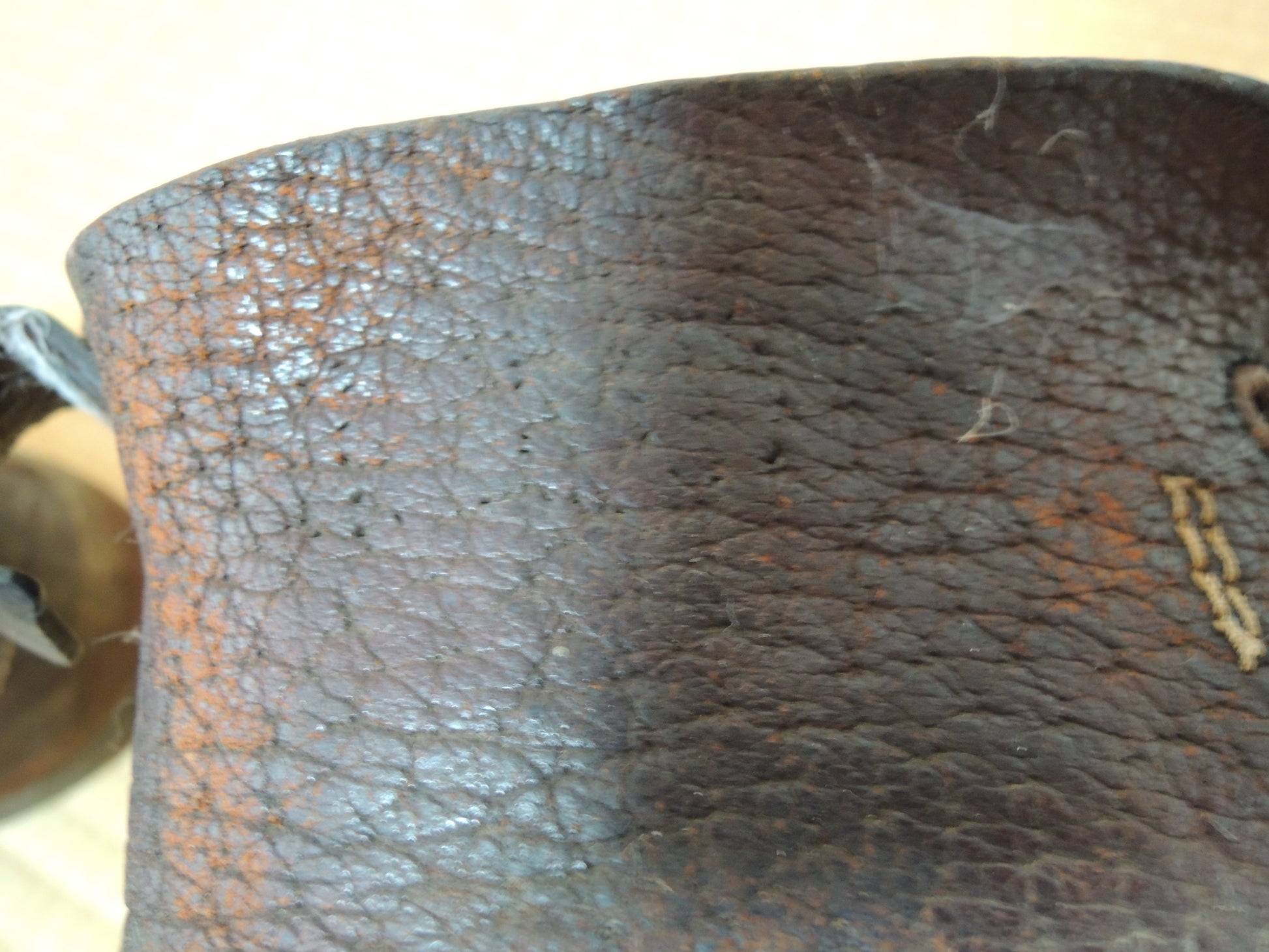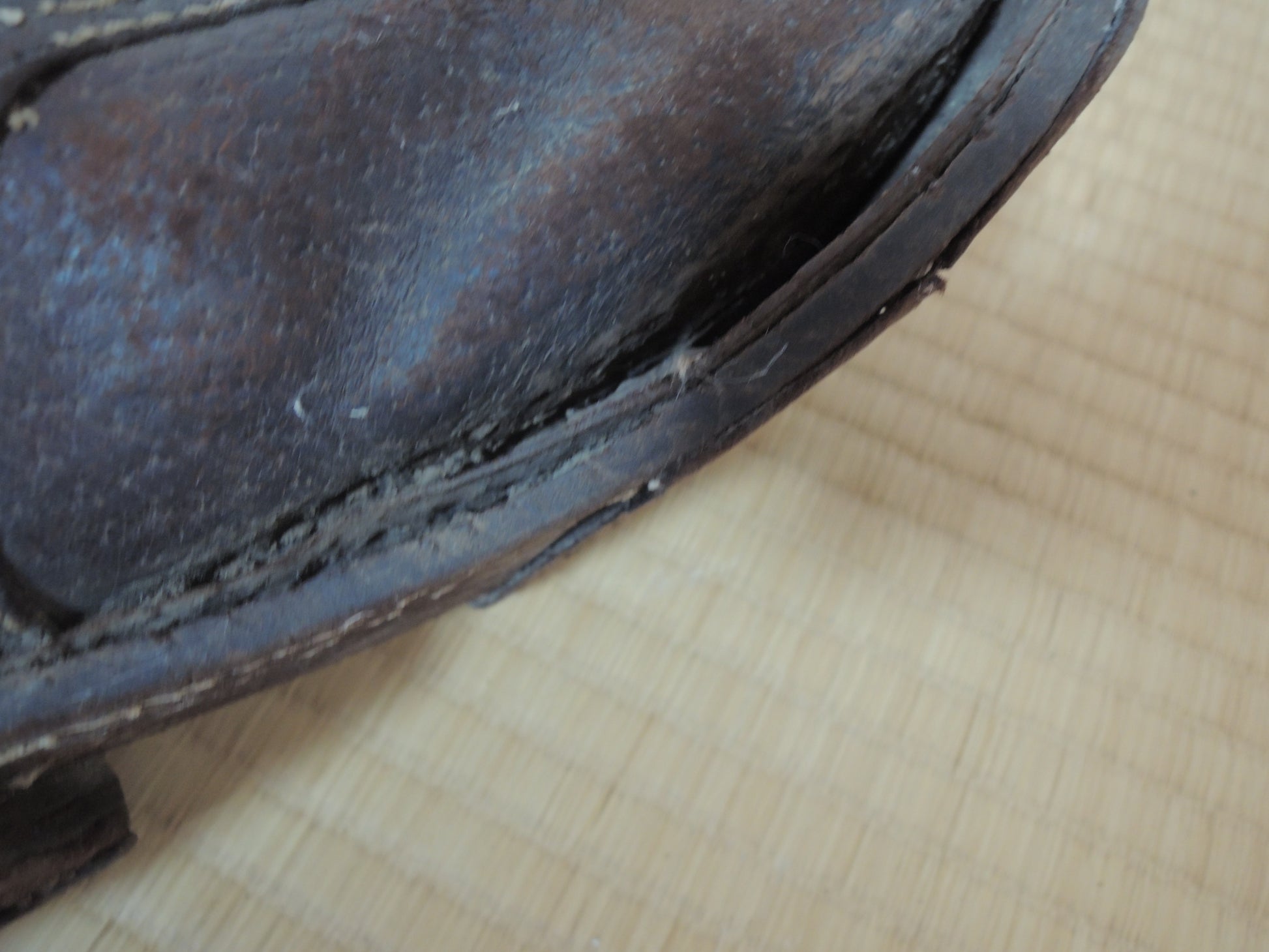 Leather is cracked, torn, or stained.